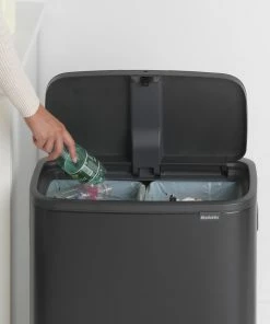 Rubbermaid Slim Jim Bottles And Cans Recycling Station Dark Grey 87Ltr
