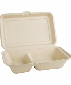 Fiesta Compostable Bagasse Two-Compartment Hinged Food Containers Natural Colour 253mm (Pack Of 200)