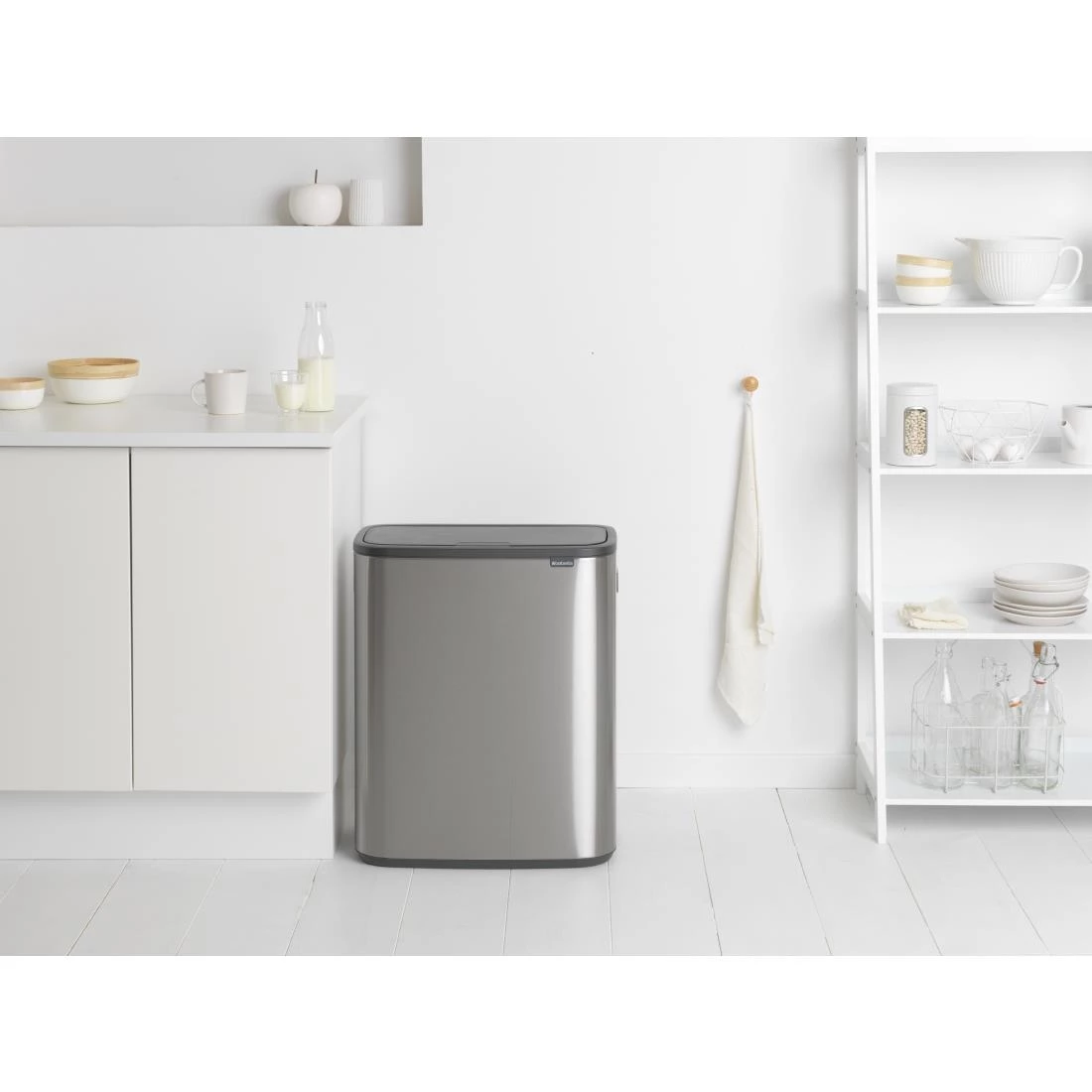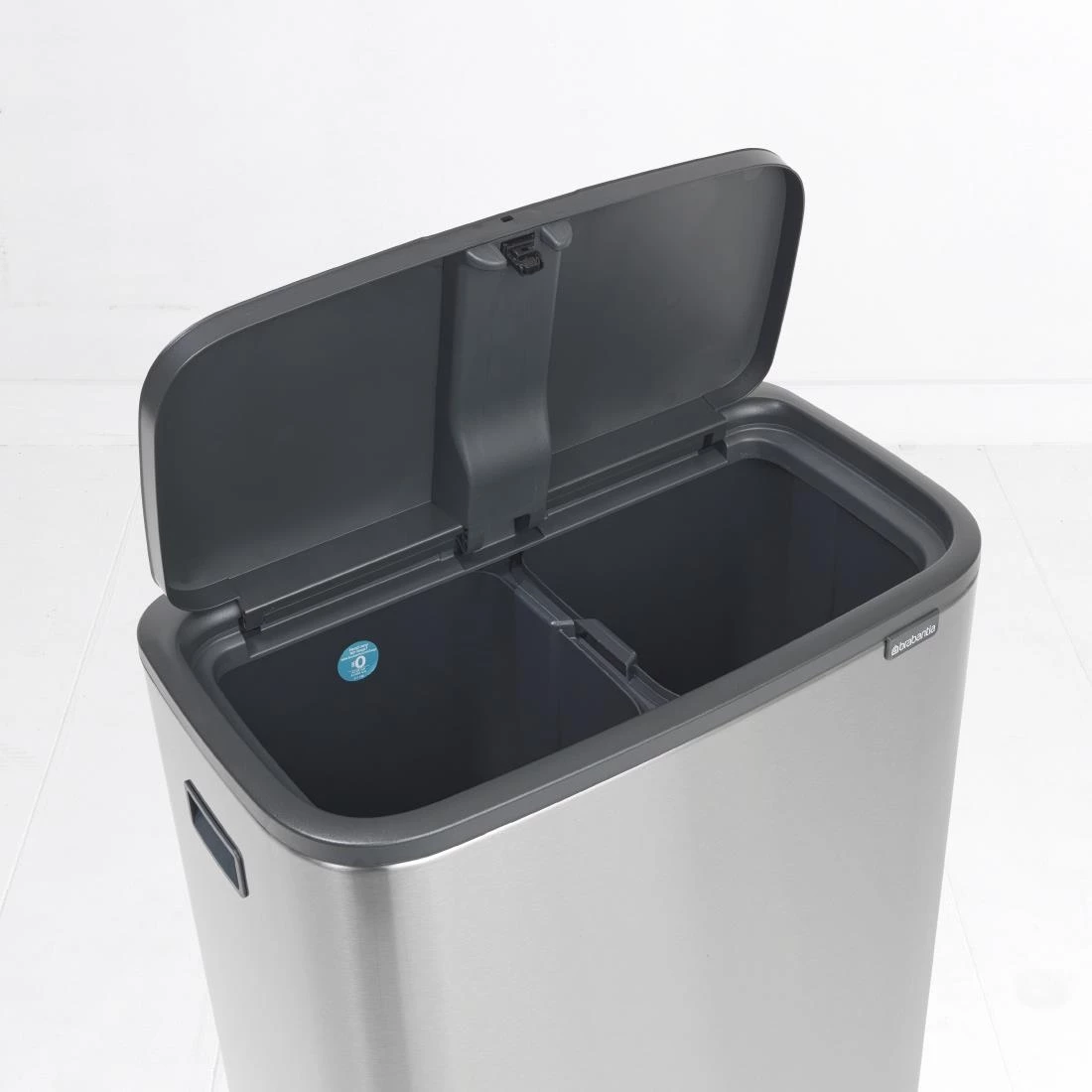 Looking for a beautiful solution for waste separation? This XXL Brabantia Bo 2 x 30Ltr touch bin has a beautiful design, plus everything you need for easy waste separation. Two spacious and removable inner buckets for two kinds of waste. It opens at the lightest touch, fits perfectly against a wall, and is easy to move around by its integrated grips. A big beauty and a big help!