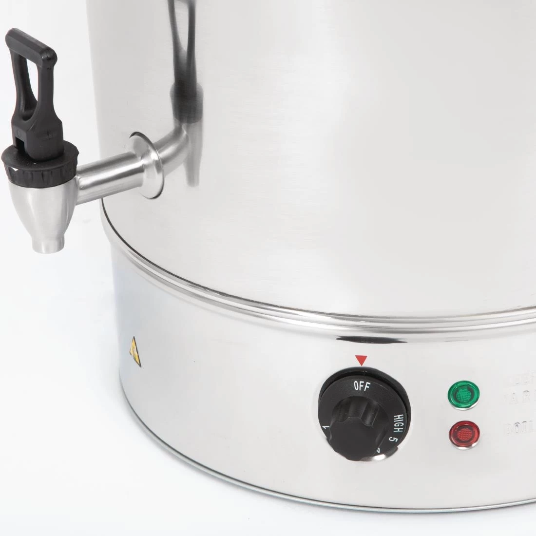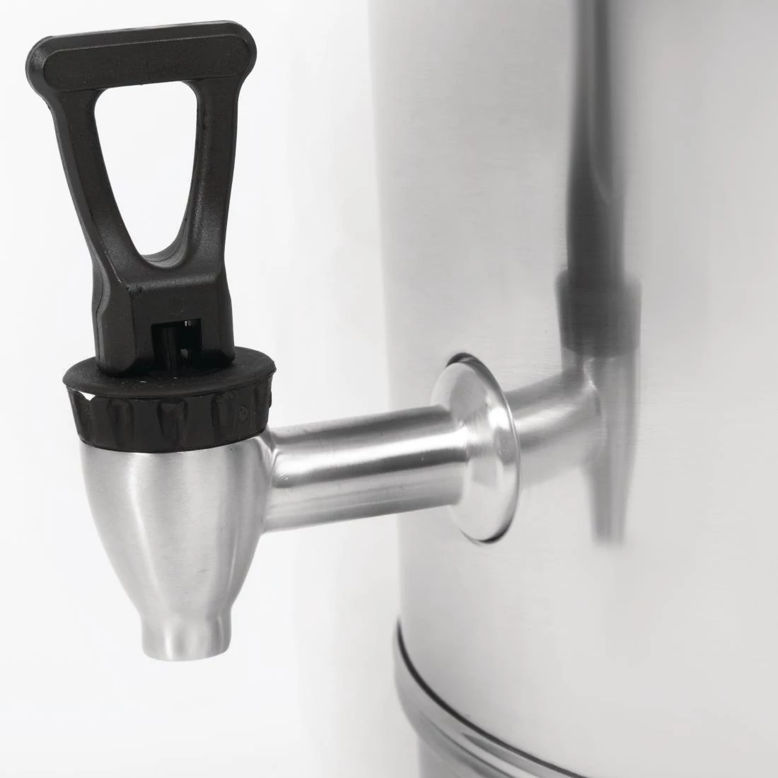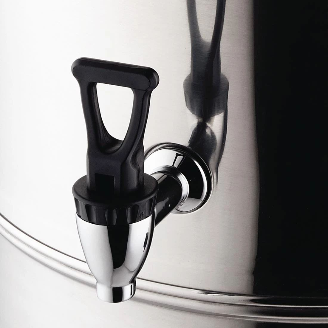 As a manual fill machine, the Buffalo is incredibly easy to set up and use – simply position, fill, plug in and switch on – there’s no need for plumbing into a mains water connection – and due to the huge capacity, refills are kept to a minimum. Cleaning is easy too, as the strong stainless steel construction is wipe-clean whilst the concealed element is much easier to descale in comparison to traditional exposed water boiler elements. And thanks to the variable temperature control, the Buffalo commercial boiler can be used to keep water below boiling if required – perfect for specialist drinks. Fitted with secure durable handles and non-drip tap.