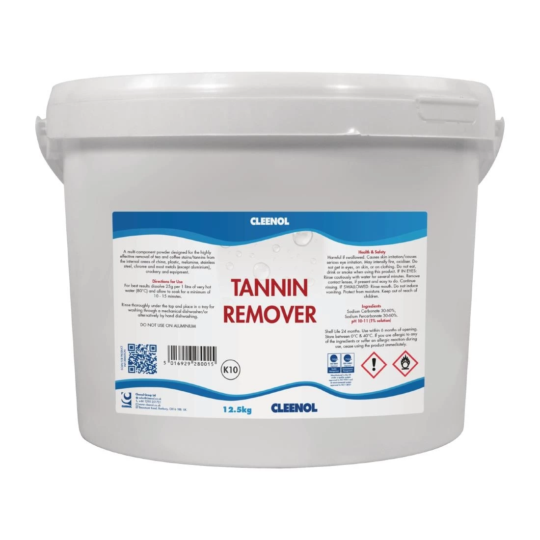 A multi-component powder designed for the removal of tea and coffee stains on a variety of materials such as china, plastic, stainless steel, chrome and melamine.
