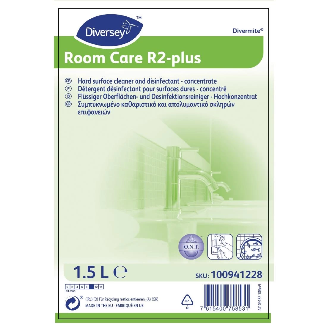 Keep the surfaces in your guestrooms and washrooms exceptionally clean with these Diversey Room Care R2-plus multi-surface cleaner and disinfectant concentrate pouches. Formulated to deliver professional results, this chemical will quickly remove dirt, grime, grease and bacteria on your surfaces. This will help you to hold your washrooms and guestrooms to the highest possible standards of hygiene and cleanliness.