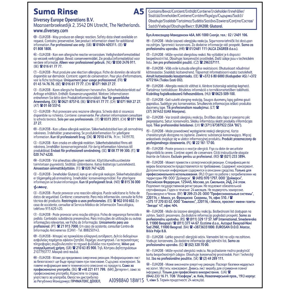The Suma rinse aid is normally distributed via Diversey dispensing equipment, but can also be used with integral dosing pumps in places where they are fitted.