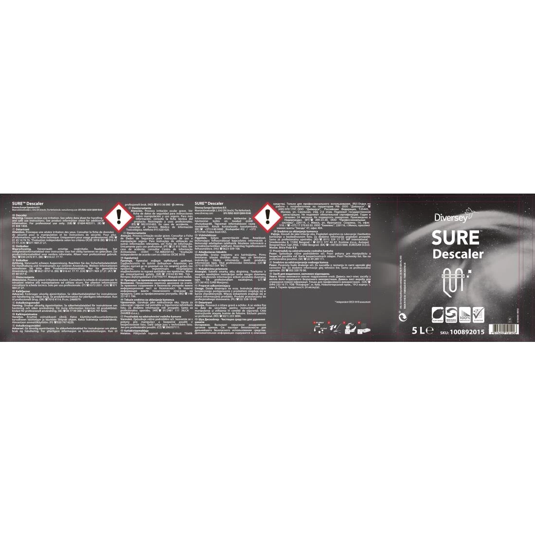 Guarantee effective, safe and sustainable cleaning with this 5Ltr Diversey SURE descaler concentrate bottle. Made entirely from renewable, plant-based materials, this descaler is completely biodegradable and free from hazardous ingredients. As such, it will keep your staff protected against potentially harmful substances when cleaning and won’t harm the planet as it breaks down.