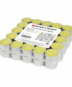 A proven repellent is citronella – a naturally occuring, lightly perfumed oil which is highly effective at keeping bugs away. These tea lights do just that and are both long-lasting and suitable for use outdoors. When used in combination with Eazyzap fly killers or glue boards, citronella tea lights provide an all-round insect killing solution for any dining area.