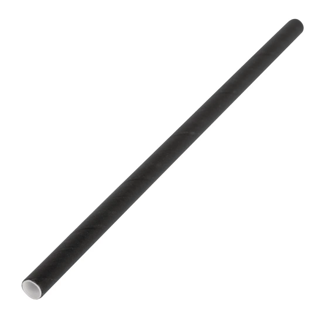 Offer your guests a sustainable substitute to traditional plastic straws with this pack of 250 x black Fiesta Green compostable paper cocktail stirrer straws. These cocktail straws are made from paper and food-grade inks and glues, which means they can be commercially composted within 12 weeks after use. This will help you to divert waste away from harmful landfill sites, instead turning these straws into nutrient-rich compost that’s used to grow more plants.