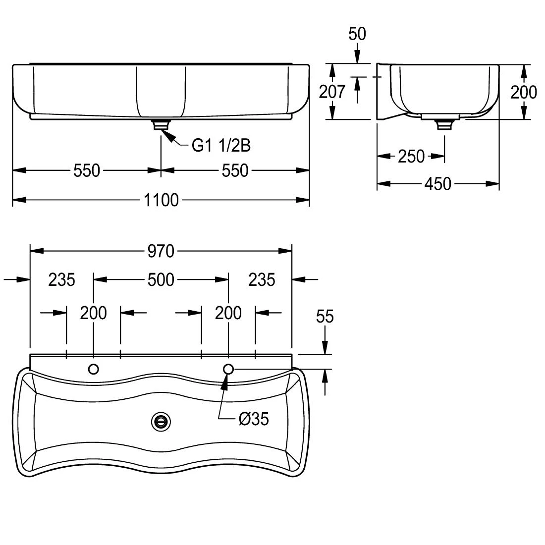- Dimensions 207(H) x 1100(W) x 450(D)mm