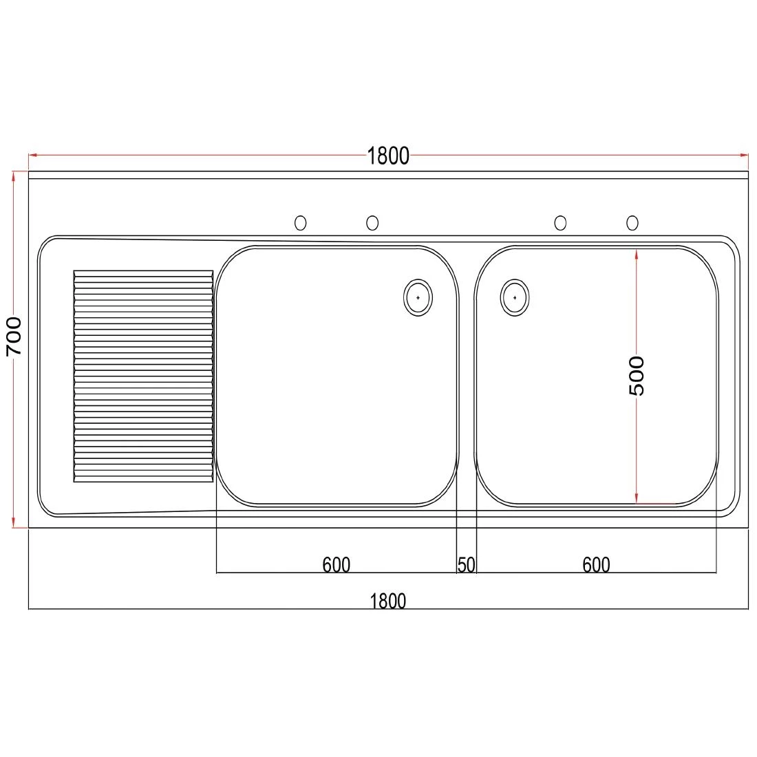 - Left Hand Drainer & Double Right Hand Bowl