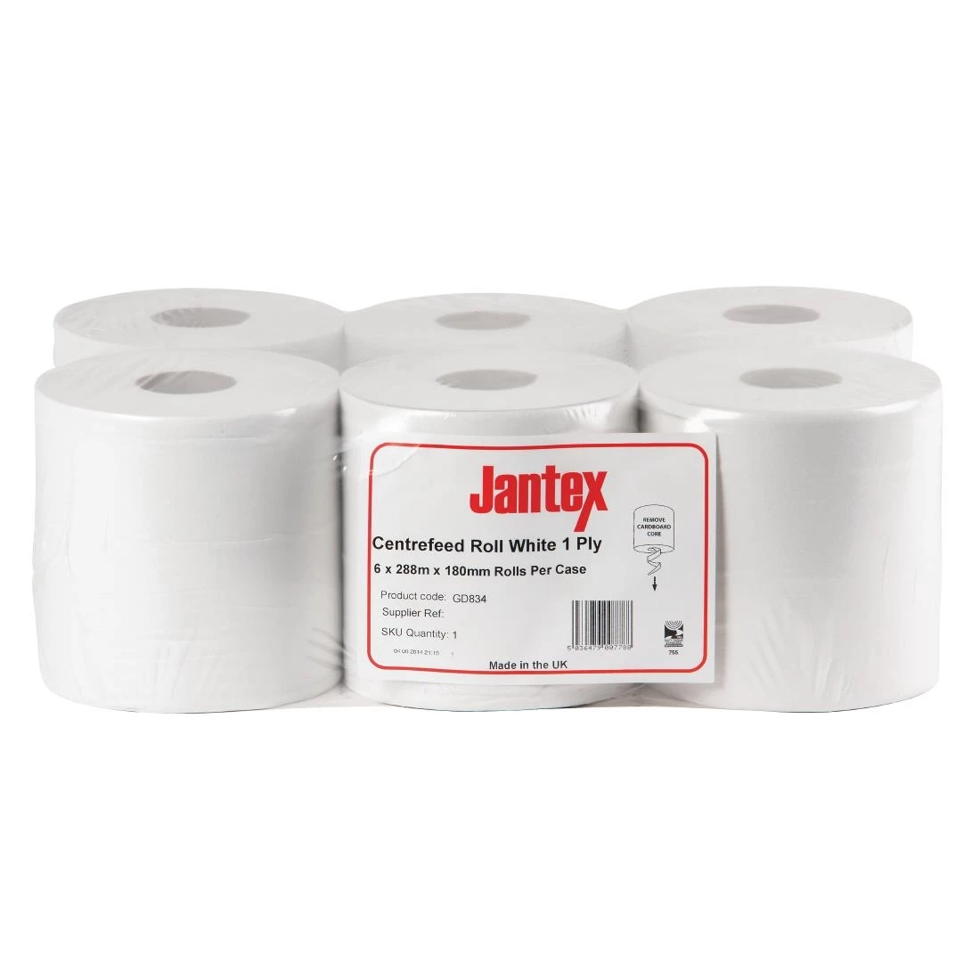 These recycled white paper rolls from Jantex offer excellent value for money and superb sustainability, making them ideal for use in food preparation areas. Perfect to have in the kitchen or behind the bar, this 800 sheet paper refill will absorb any of those food related day-to-day spillages, helping you to maintain a clean and hygienic environment at all times. The centrefeed design ensures every single sheet will be used, saving you money while also reducing the damaging environmental effects of excessive paper wastage.