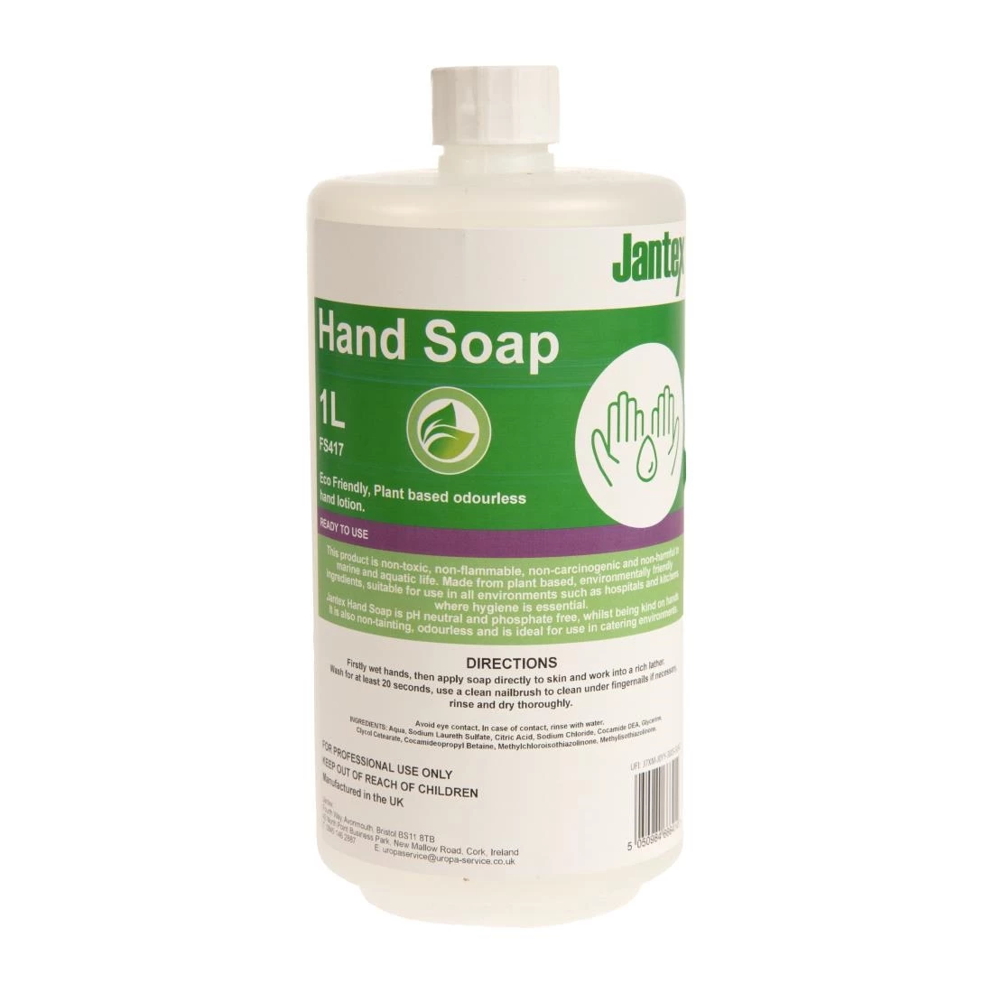 Looking for hand soap that’s as tough on germs as it is kind on skin? Then this 1Ltr bottle of hand soap from Jantex Green is ideal for you. Formulated to work into a rich lather, this soap will quickly tackle dirt, grime and oil on hands to leave them wonderfully clean. It’s pH-neutral and free from phosphates too – ensuring a thorough clean without irritating skin.