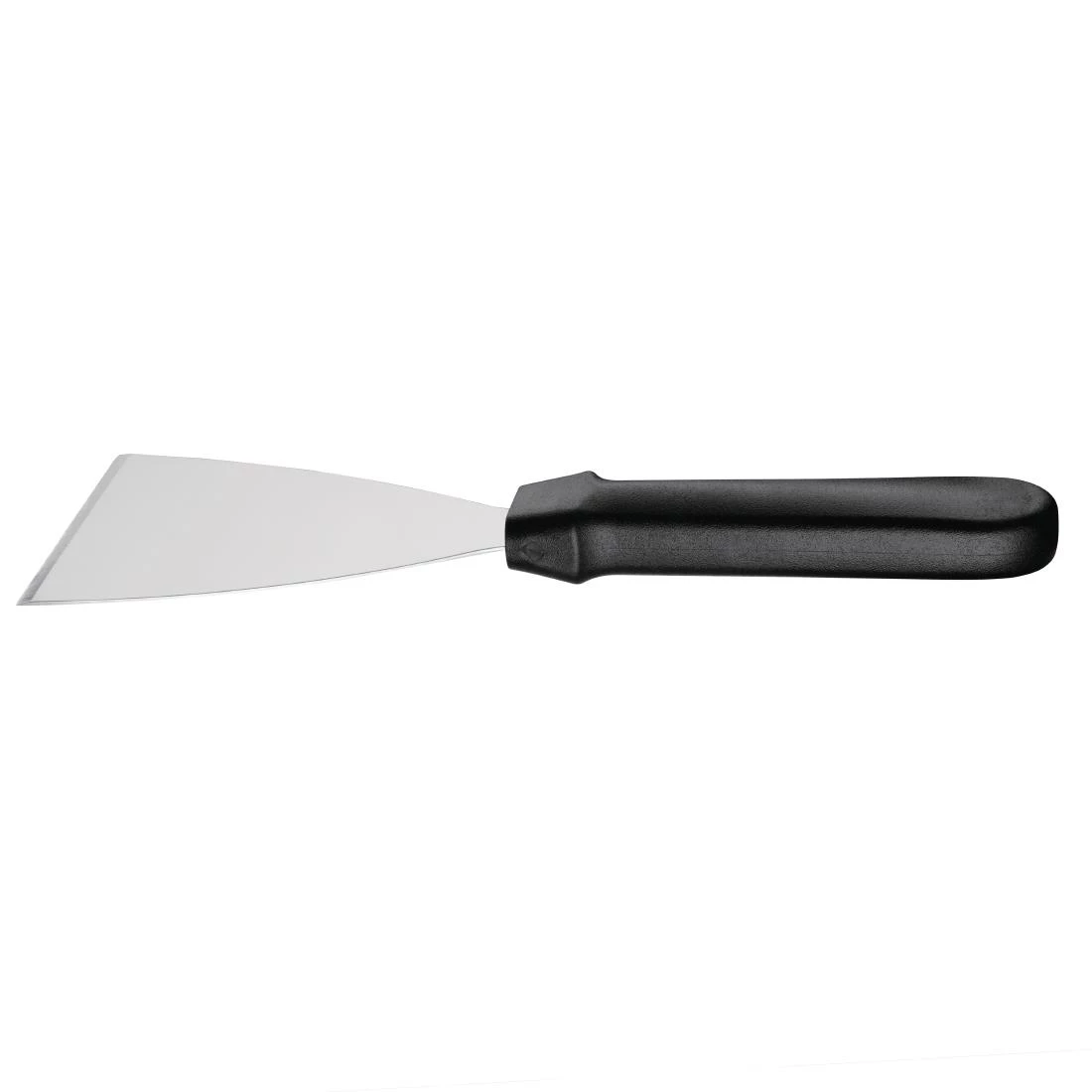 Thanks to the stainless steel and plastic construction, this griddle scraper boasts excellent durability that provides long-lasting use in professional environments.