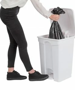 The white Jantex step on bin features a pedal operation which helps staff to avoid using their hands when opening it, minimising the risk of cross contamination. The bin also benefits from a 45 litre capacity, a tough polypropylene construction and tight fitting lid to keep odours contained. Practical and highly durable, this hygienic bin is ideal for use in kitchen areas within a wide range of catering environments.