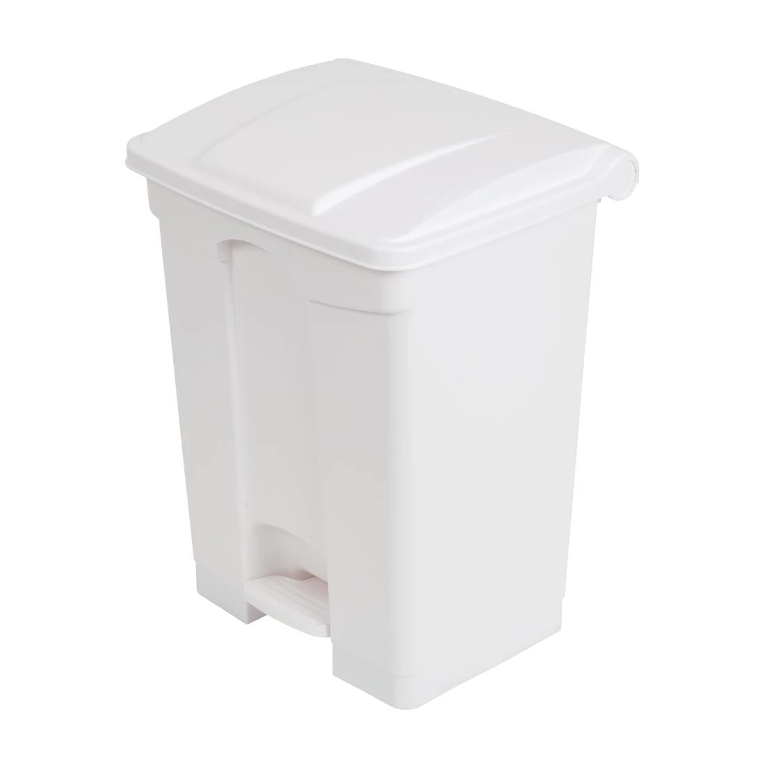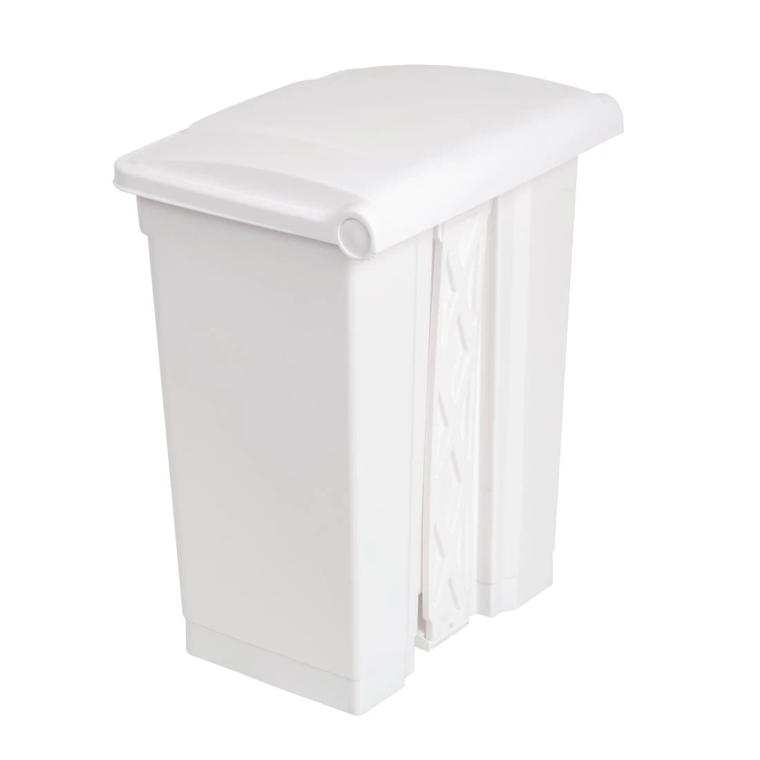 This high capacity kitchen bin in clinical white benefits from a strong polypropylene construction and a hands-free pedal operation which helps to cut the risk of cross-contamination in kitchen areas. Built for heavy commercial use, the Jantex pedal bin also features hooks for bin bags, and a tight fitting lid which minimises odours, making it ideal for use in busy kitchens and a wide range of catering environments.