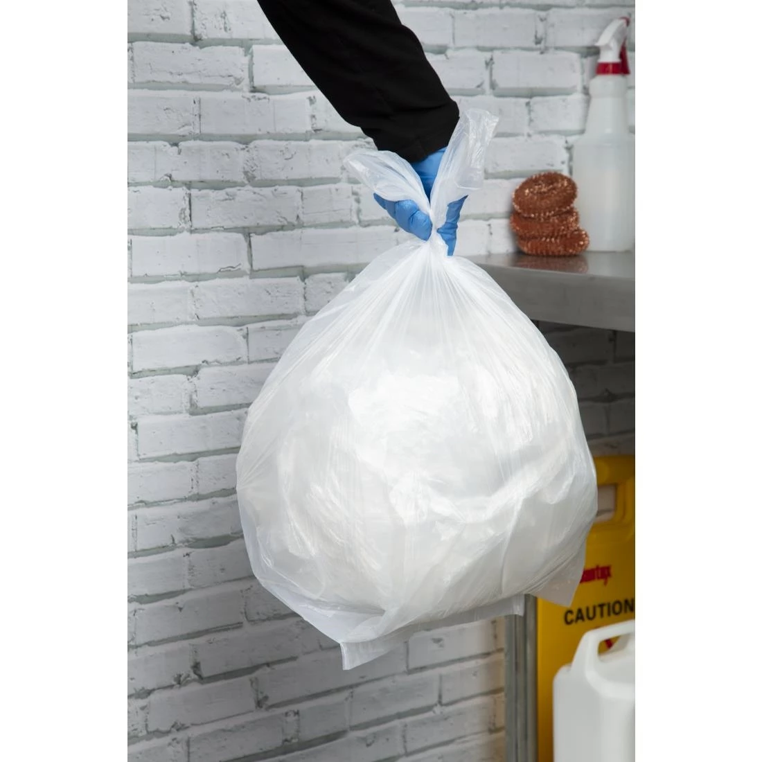 Great value for money, these swing bin liners by Jantex are presented in quantities of 1000. These white coloured waste sacks are ideal for swing bins, such as those in kitchens, washrooms and even hotel rooms. These economy sacks feature a tie waist at the top to ensure they can be done up with ease. Perfect for busy businesses where the removal of rubbish is high and a clean and hygienic environment is important.