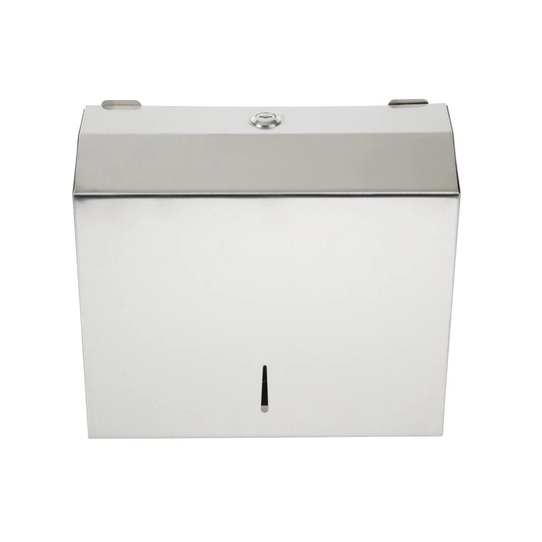 Strong, sturdy and attractive, this stainless steel paper towel dispenser by Jantex is a great addition for use within bathrooms. The simple design ensures it is low maintenance, perfect for those who operate in a busy environment. The ease of distribution for customers allows it to be used quickly and efficiently, helping to combat cross contamination. This satin finish ensures this dispenser looks great in any setting you chose to put it in.