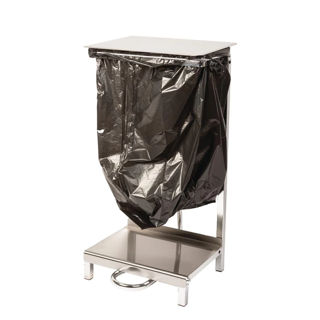 The Jantex steel sack holder is a free standing, pedal-operated sack holder. The stainless steel frame and chrome-plated steel tubing makes this sack holder easy to clean and durable, perfect for use in commercial kitchens and utility rooms. The pedal design also keeps hands clean and germ-free, reducing the risk of cross contamination in your venue.