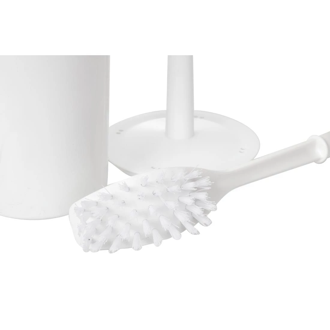 Constructed from a highly durable and easy-to-clean plastic material; the set saves you money on replacement costs and time on maintenance. Designed with all-white colourway, the brush and holder feature a classy and simple appearance, that will easily fit into any bathroom decor.
