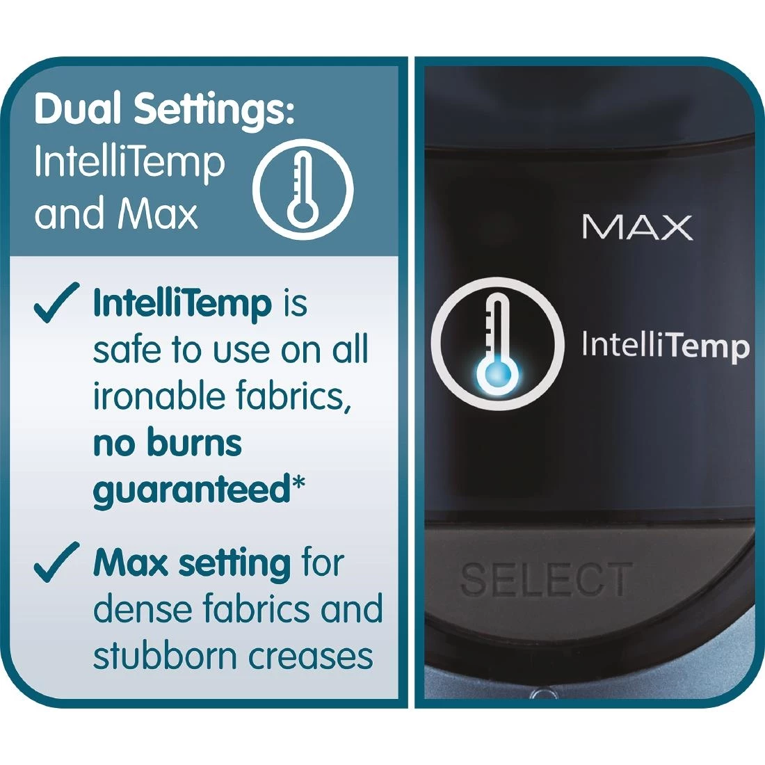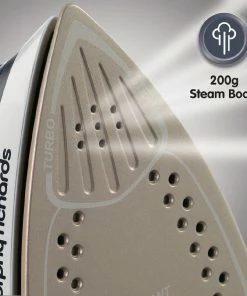 The Intellitemp technology is truly impressive. Whereas most traditional irons have a temperature setting, the Turbosteam is designed to be effective on all ironable fabrics, from cashmere to cotton, with no fiddling between temperatures or burning. The shaped precision tip and rolled edge also help to make ironing accurate and snag-free, whilst the Pearl Ceramic base ensures a smooth, hassle-free ironing experience.
