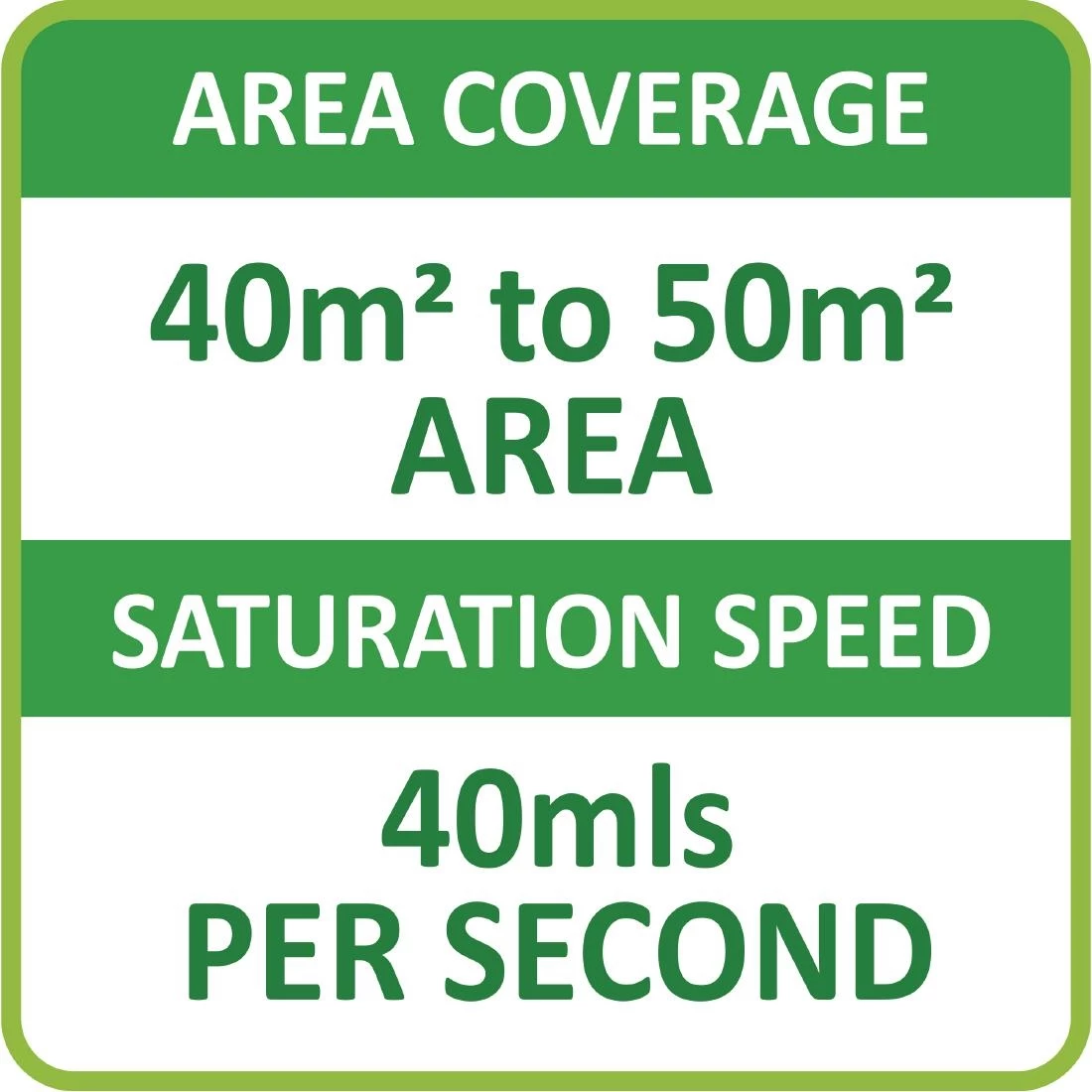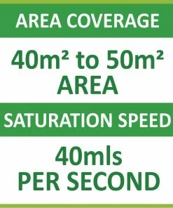 - Dispenses a fine mist at 40ml per second, covering areas of up to 50m²