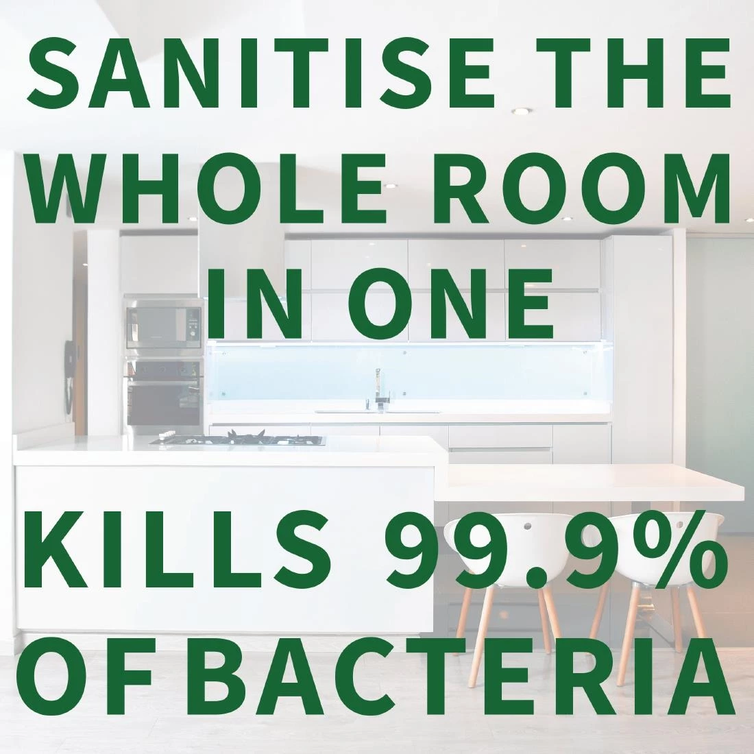 - Effortlessly sanitise entire rooms in just a few short bursts