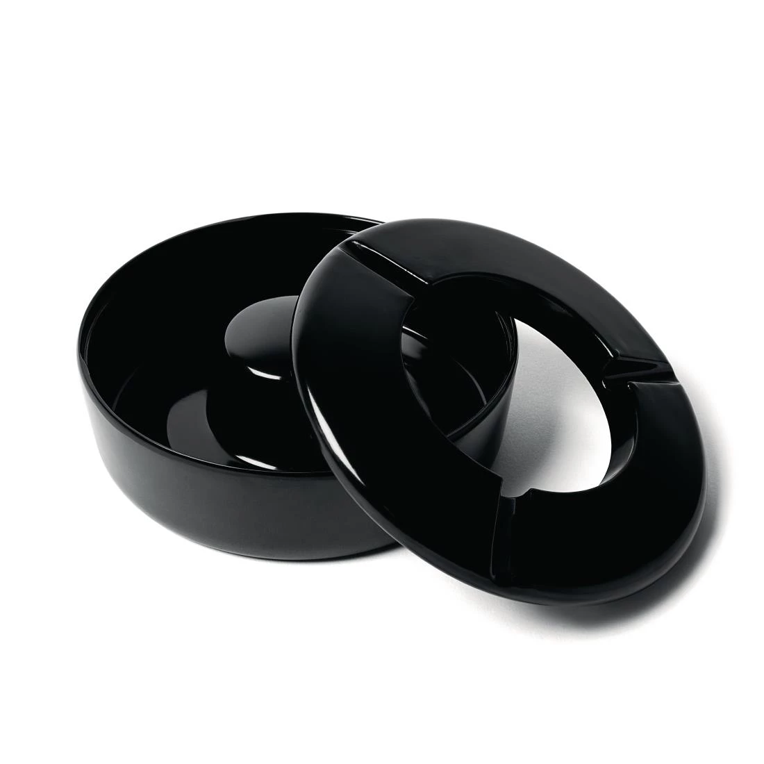 A windproof ashtray with a two piece design which both reduces odours and keeps ash and cigarette butts out of view, also prevents ash from being blown away, perfect for use on tables in pub gardens.