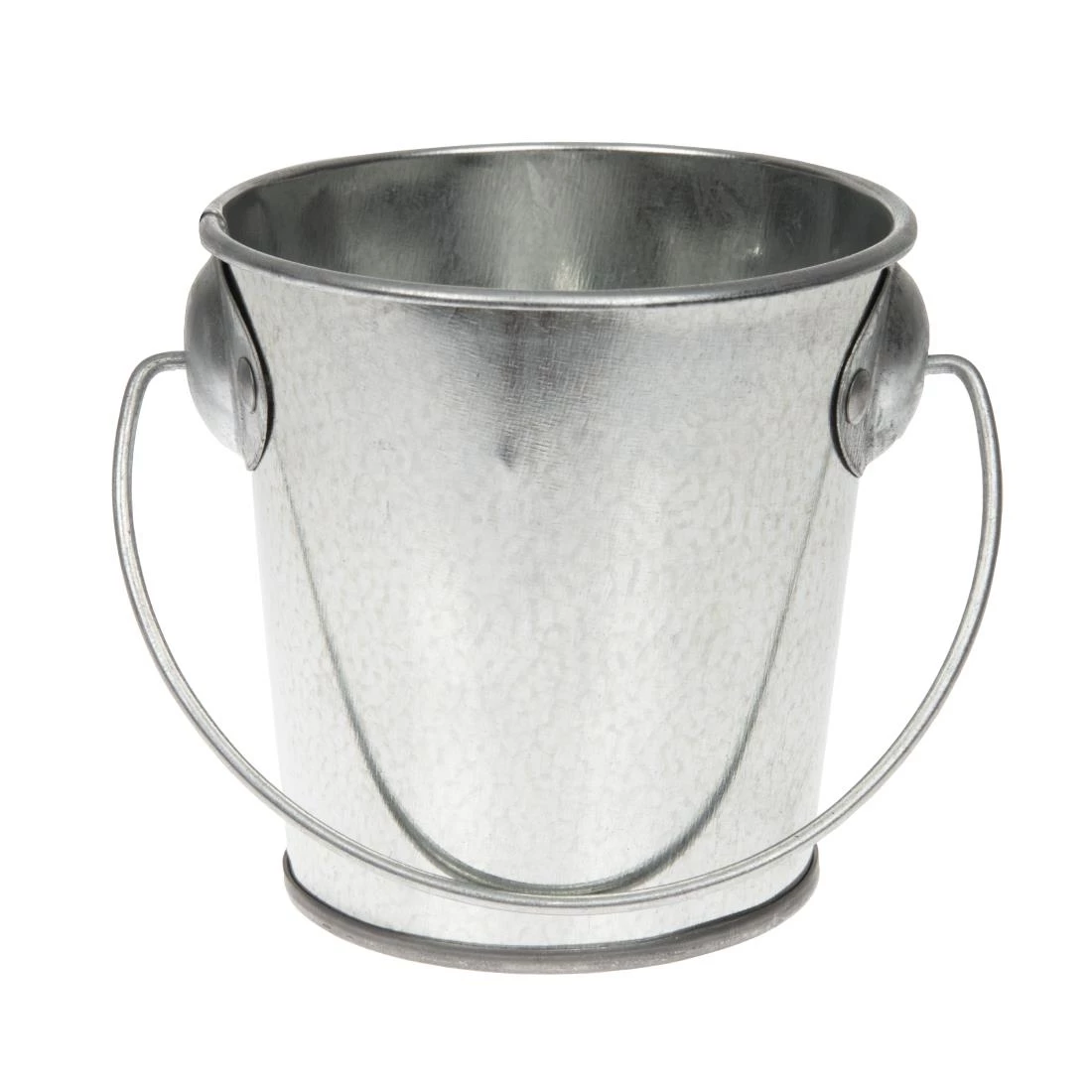 A contemporary looking small round galvanised steel bucket which is ideal for serving fries, scampi and chicken. Line with Vogue baking parchment (DM177) for a ‘gastropub’ look.