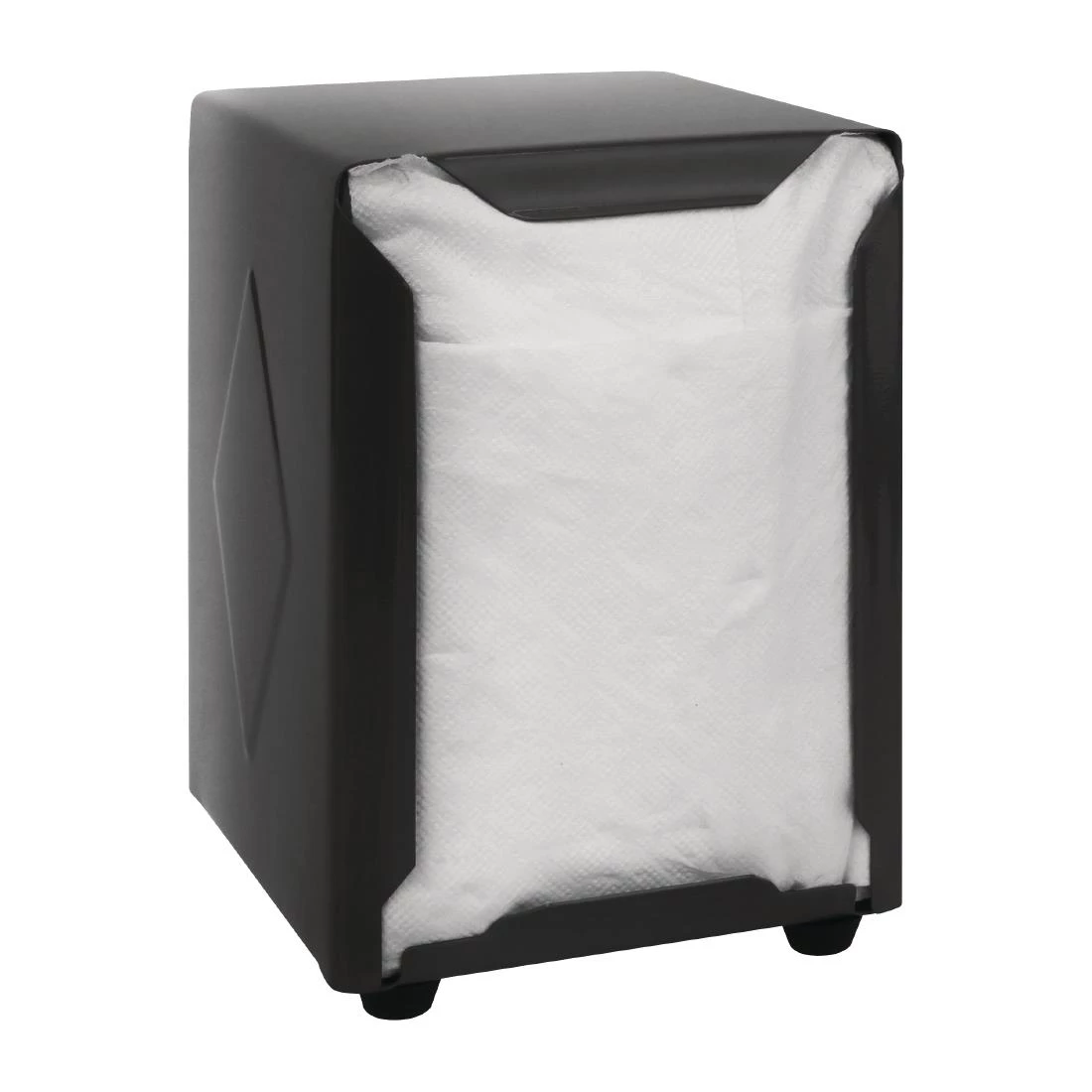 From Olympia, this black stainless steel napkin dispenser features in a classic 1950s style. The double side load allows you to dispense napkins quickly and efficiently, perfect for busy periods. Made from stainless steel, this dispenser is able to withstand heavy use in your bar or restaurant. It is completed with four small rubber feet so it stays in place on your bar or table top.