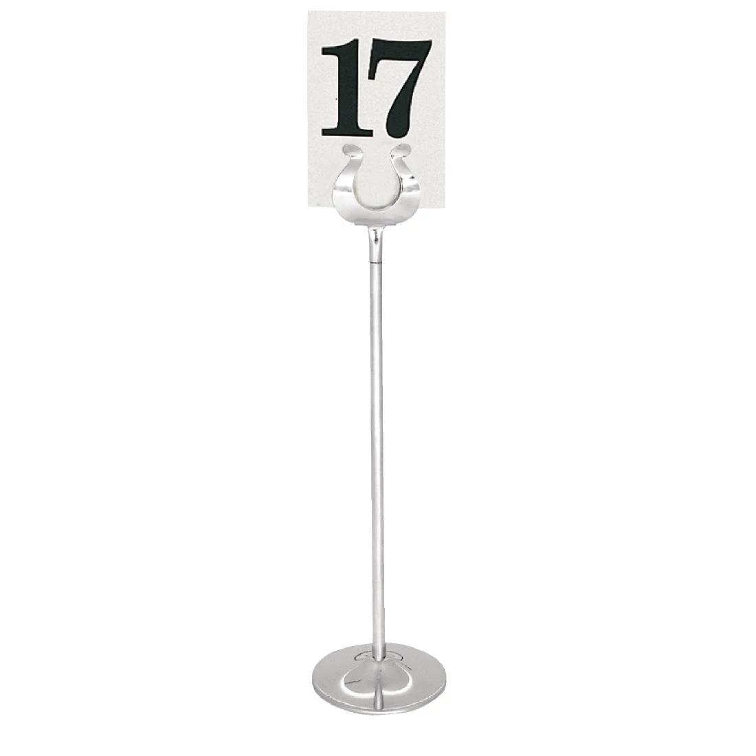 A stainless steel table number stand, which is ideal for holding the plastic table numbers, GC086 and GB629, just what you need for clear identification of your tables. Also available in a range of other heights, this Olympia stand has a heavy base for stability and can be used in conjunction with table service or counter ordering. Perfect for use everywhere from visitor attraction tearooms to Sunday carveries.