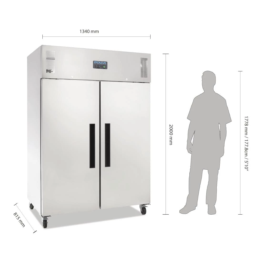 With a generous 770 litres of usable chilled storage capacity, the Polar G-Series upright double door commercial fridge is a superb option for the professional kitchen. Designed for everyday use, the fridge includes strong, lockable self-closing (from 90°) doors, heavy-duty castors for easy positioning and user-friendly controls for precise temperature regulation.