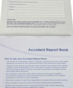 You must keep a record of injuries that happen to employees. Within the publication is advice on how the accident book should be used and an introduction to reporting of injuries, diseases and Dangerous Occurrencies Regulations 1995. To ensure you comply with the Data Protection Act 1988, this book has been produced with the tear off report forms allowing details of that person to be kept filed in a safe and secure place.