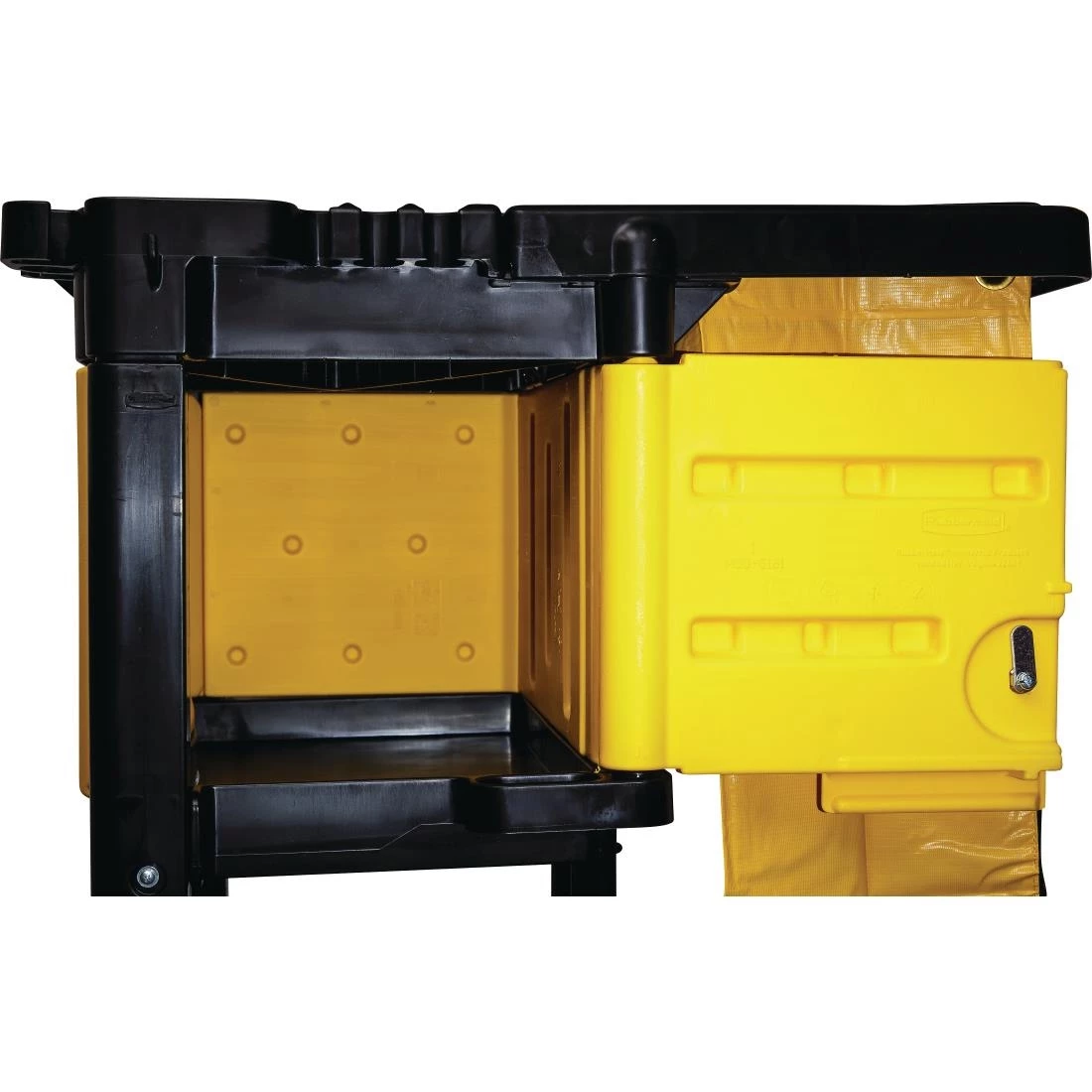 The Rubbermaid locking cabinet features a smooth walled construction that cleans easily and keeps a professional appearance, perfect for use on cleaning trolleys. Featuring a vinyl bag that unzips for easy removal of rubbish bags, this janitorial cart accessory is perfect for the Rubbermaid cart (L658). Optional easy fit locking cabinet for valuables (sold separately).