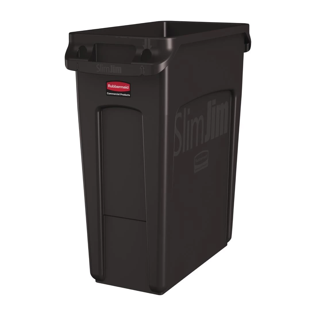 Delivering the best in practicality and versatility, this brown 60Ltr Rubbermaid Slim Jim container is ideal for use in any commercial kitchen, high-volume dining area, workplace or retail establishment. Four innovative venting channels create airflow throughout the container to reduce the vacuum effect when lifting out refuse sacks. This makes removing bin bags considerably easier for your staff, enabling an efficient cleaning operation while also reducing the risk of worker injury through straining.
