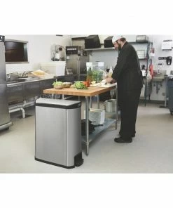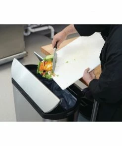 Featuring a large 90 litre capacity, this stainless steel pedal bin from Rubbermaid is perfect for commercial waste disposal in kitchens and food preparation areas, with a foot operated lid that helps keep hands free from dirt and germs. The pedal lid closes quietly and tightly to reduce sound and lock in bad smells, helping you to maintain a pleasant environment for staff and customers. The small footprint of the Slim Jim bins means they can fit into small spaces and be discreetly placed to save space.