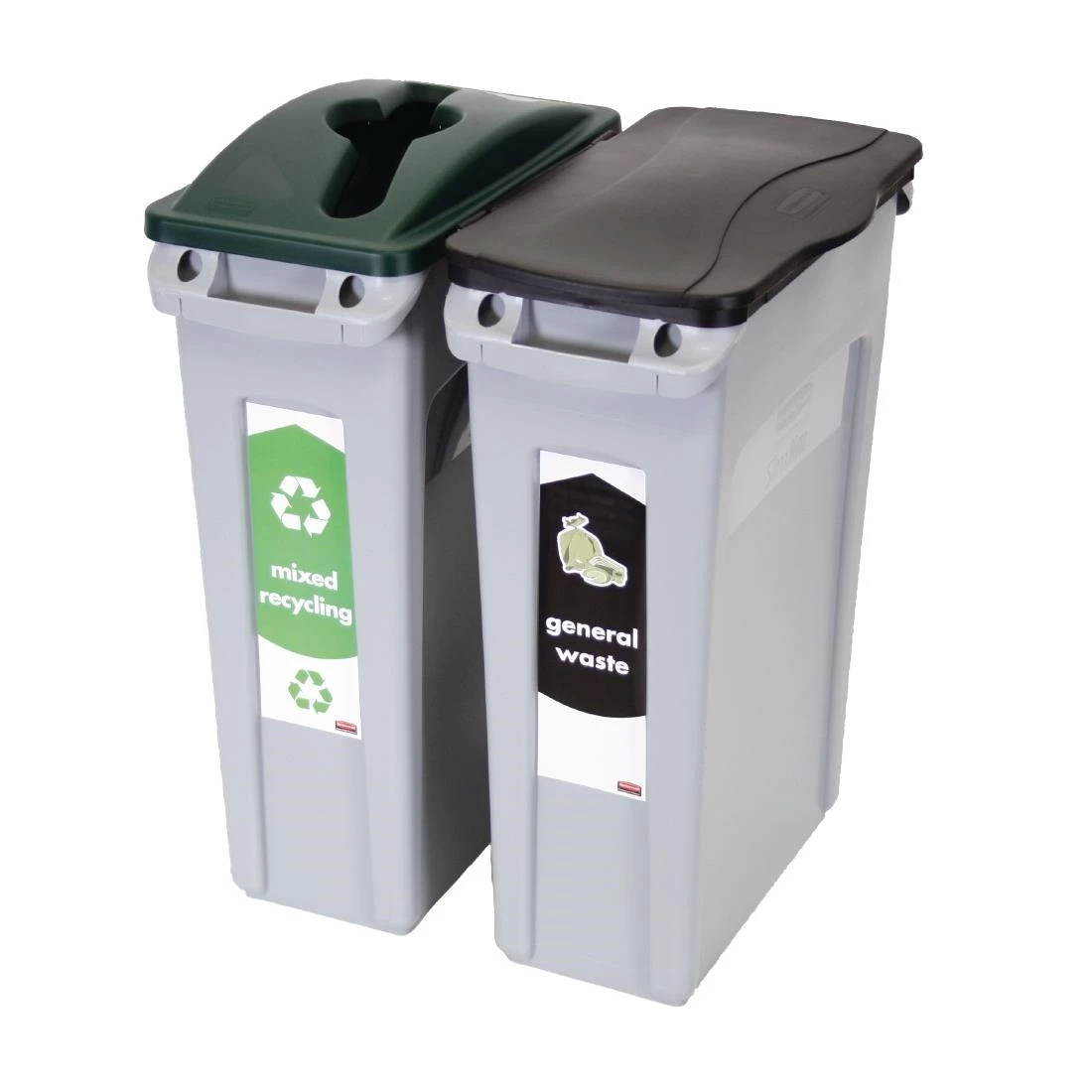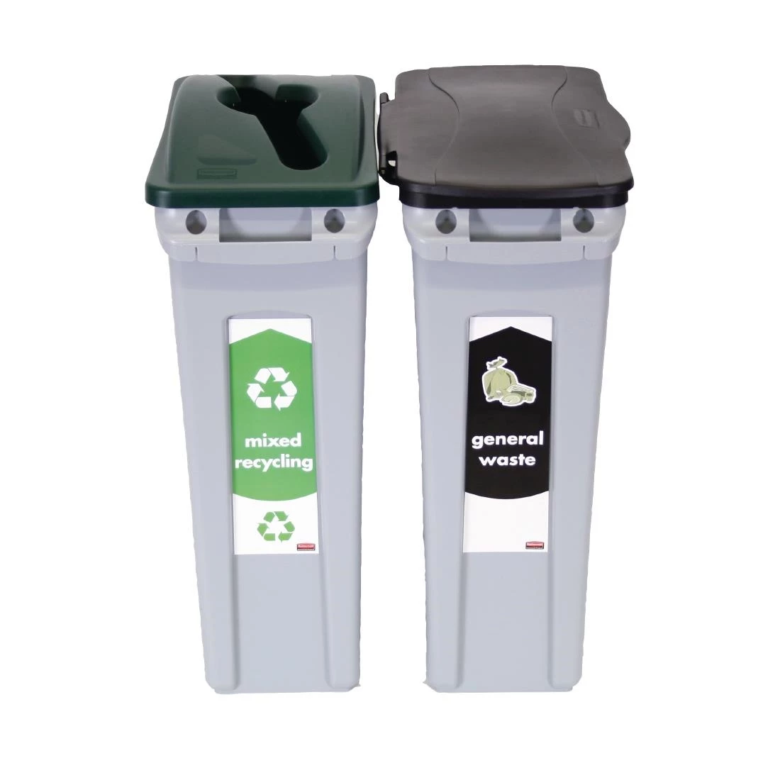 This twin pack of Rubbermaid Slim Jims bins is ideal as a recycling starter pack, featuring two slim design refuse containers clearly labelled for mixed recycling and general waste. The colour-coded and labelled designs will make it easy for your staff or customers to identify the correct container for their waste. This will help to encourage more environmentally responsible waste disposal in your venue.
