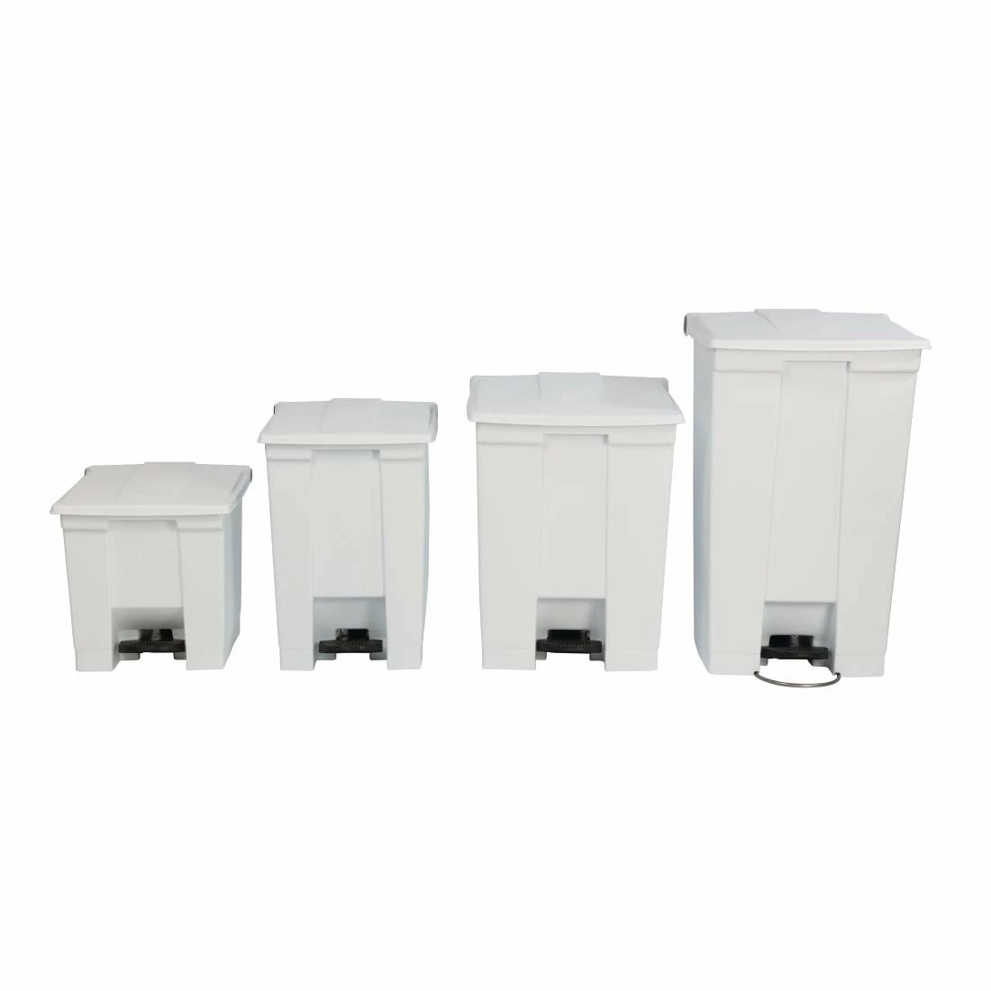 Featuring a generous storage capacity of 68 litres, this white step on container from Rubbermaid is excellent for use in kitchens and utility rooms. With a tough, puncture and scratch resistant construction, made from one-piece moulded plastic, the waste container can withstand regular use in busy commercial areas. The pedal operated lid allows for hands free disposal of rubbish, helping to maintain clean and germ free hands.