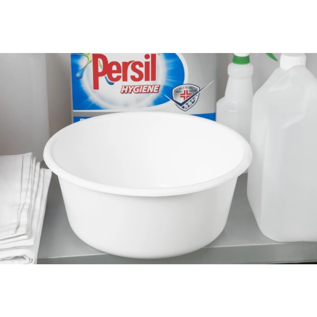 A perfect partner for washing up dishes within your premises, this washing up bowl is presented in a clean white hue. Crafted from plastic, this cleaning bowl has a large capacity, enabling you to clean a mass amount of items in one go – saving you time and saving on cleaning chemicals and water. With a rolled lip completing this washing up bowl, it is easy to lift and empty, no matter how heavy it may get.