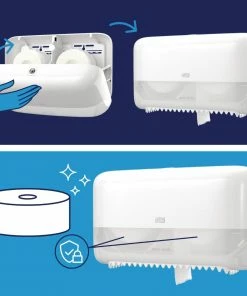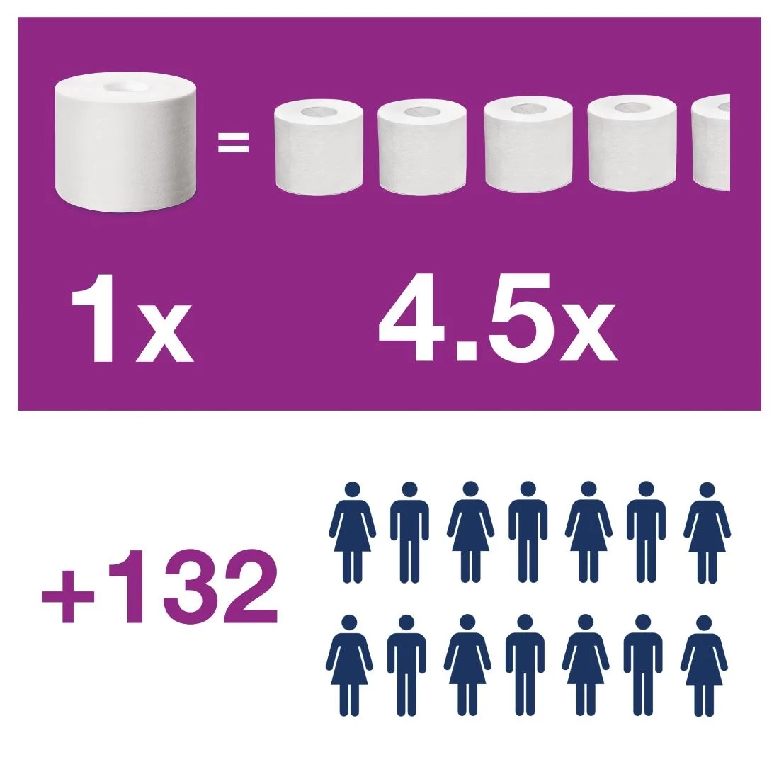 The Tork coreless toilet roll refill features approximately 900 high quality 2-ply sheets per roll, making them suitable for use in any commercial or public washroom or bathroom. These great value toilets rolls come in a pack of 36, ideal for busy washrooms such as in restaurants, cafes and bars.