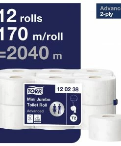 Keep your washrooms running smoothly with this pack of 12 x Tork mini jumbo toilet rolls. Made with a 2-ply construction, the toilet paper boasts good strength and absorbency. This means your guests will use less paper per visit, cutting your costs in the long run.