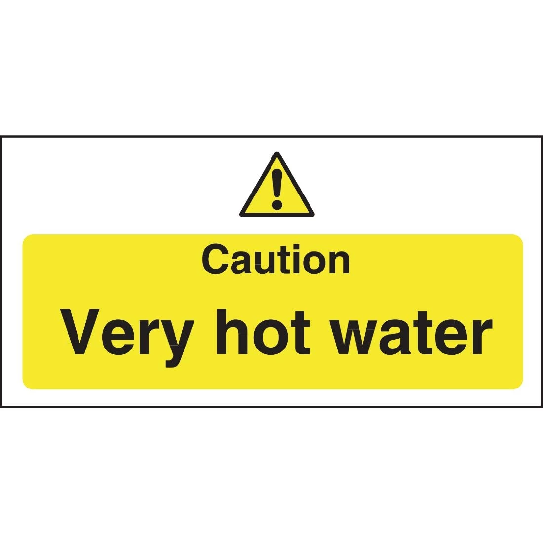 Signs are crucial in every workplace to save accidents and protect your staff from hazards. This clearly illustrated ‘hot water’ sign is highly visible and, as a danger sign, has a black triangle on a yellow background. The danger signs indicate an imminently hazardous situation which could result in death or serious injury.