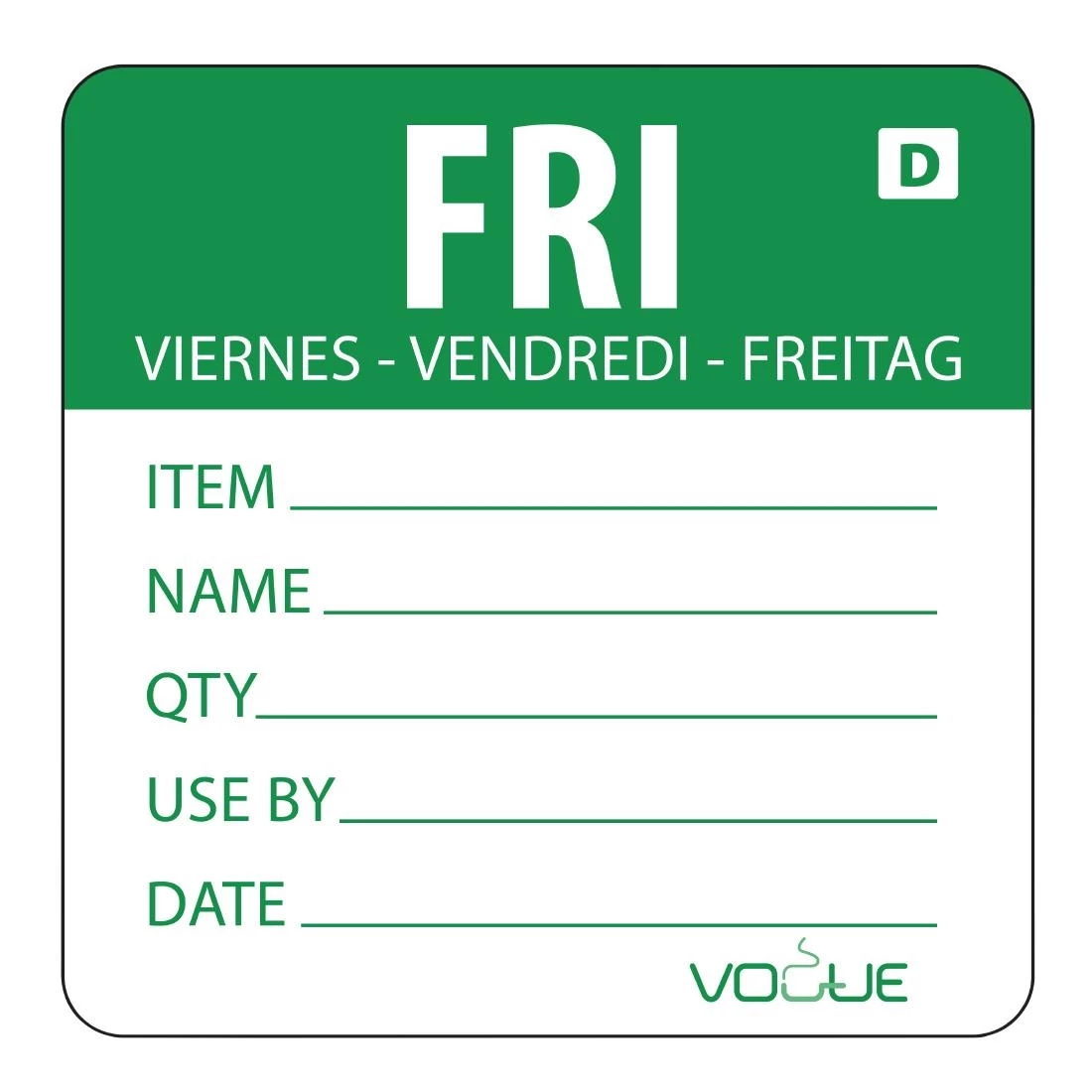 A roll of 250 dissolvable colour coded food safety labels to work alongside days of the week rotation systems, ideal for making sure all food used and prepared in commercial kitchens is fresh and not past its sell by date.