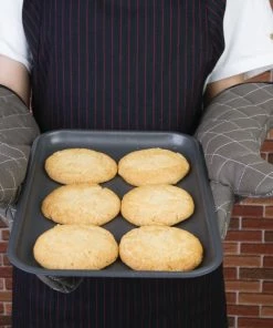 This elbow length flame retardant oven mitt is made from an extra thick quilted material that offers excellent heat protection up to 250°C. This is perfect for removing hot baking trays and cake tins from ovens in a safe way. And thanks to the long 17″ elbow-length design, the glove helps to protect the whole forearm – essential when reaching into the depths of a large commercial oven. The mitt is designed to fit either hand, making it ideal for both left and right- handed users.