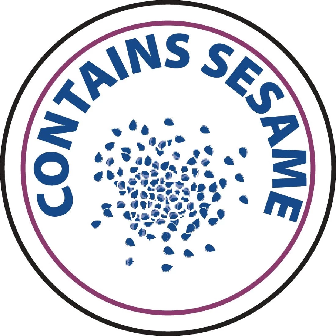 An easy to peel 1 inch round sesame allergen labels, used to highlight food stuffs containing sesame. People with food allergies cannot be too cautious with what they eat, making food labelling extremely important to them. As of December 13th, 2014, it is a legal requirement that if any of the fourteen food allergens on the regulatory list are contained within a packaged food then those ingredients must be highlighted. Sesame can often be found toasted on buns, in bread or bread sticks, hummus, sesame oil and tahini.